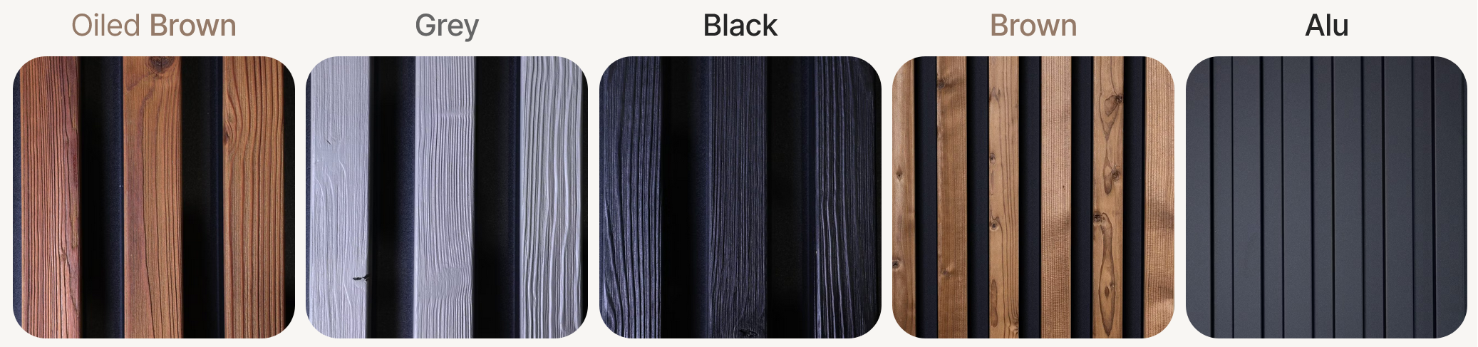 Фасадните панели от естествено дърво са налични в следните красиви цветове: